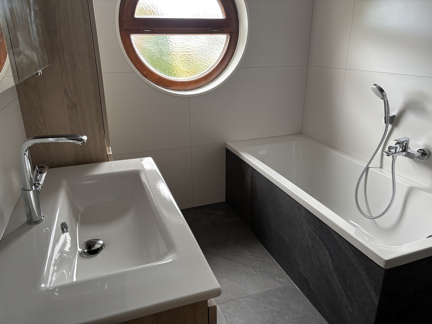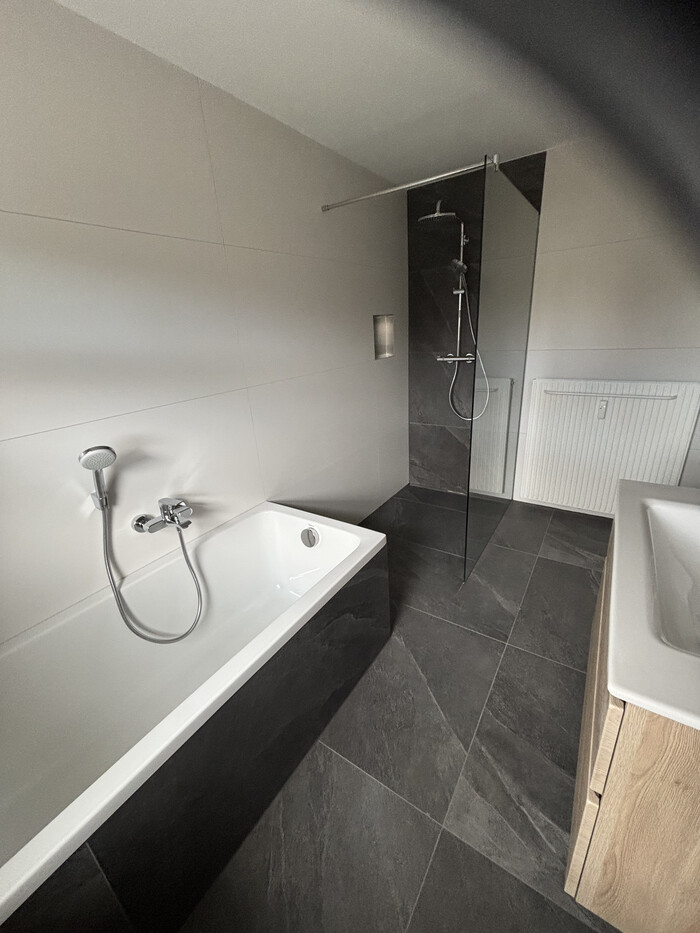 Bad mit begehbarer Dusche und Wanne, Bodenheizung
