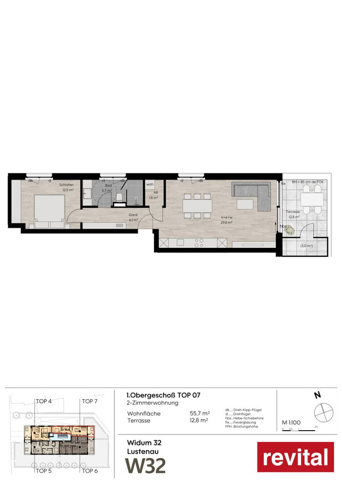 Widum 32 in Lustenau zeichnet sich durch die hervorragende Infrastruktur aus. Einkaufsmöglichkeiten, Schulen, Restaurants und Freizeiteinrichtungen befinden sich in unmittelbarer Nähe. Sowohl das Ortszentrum als auch Naherholungsgebiete sind bequem erreichbar. Zudem ist die Lage für Pendler in die Schweiz bestens geeignet.