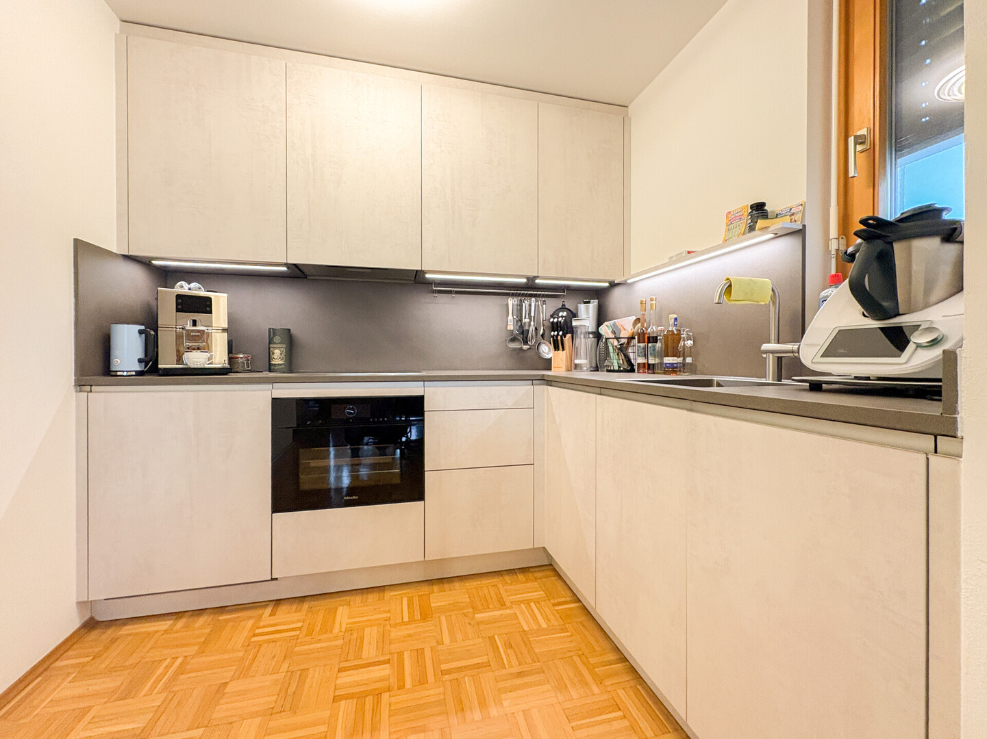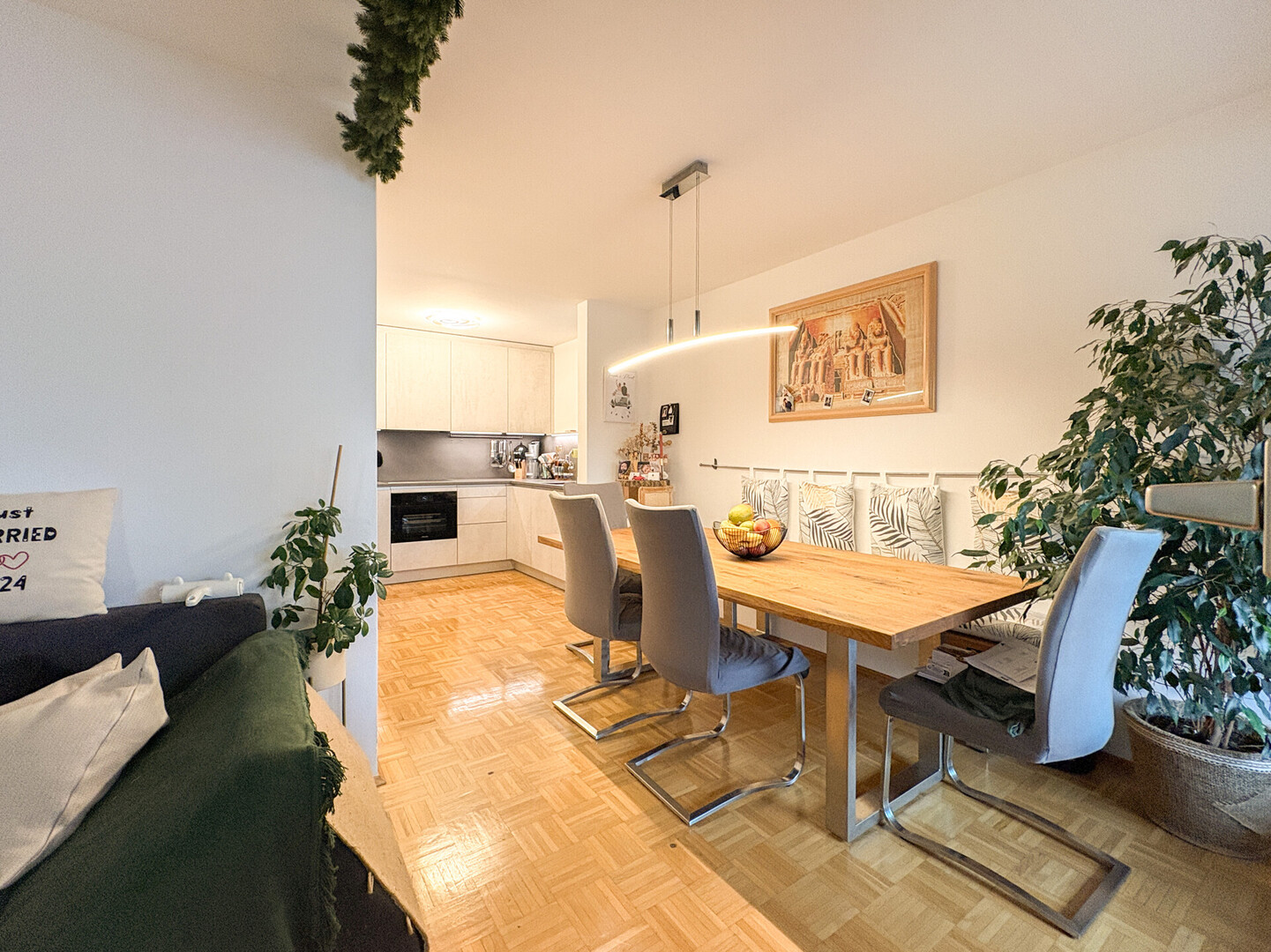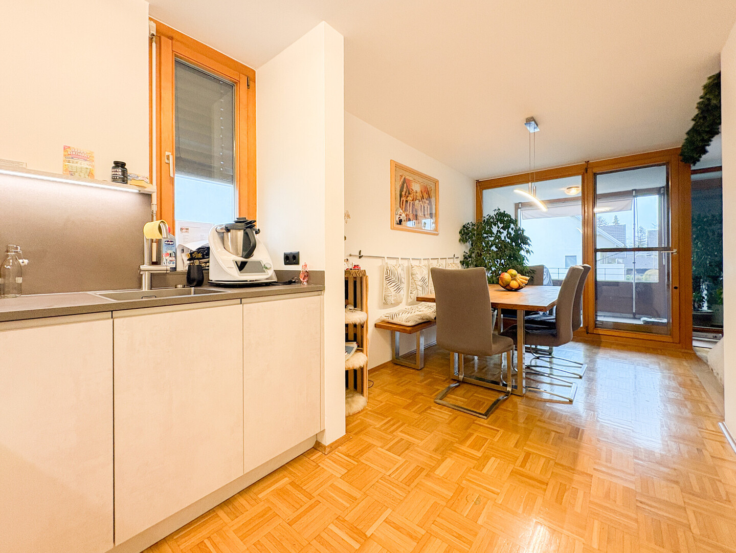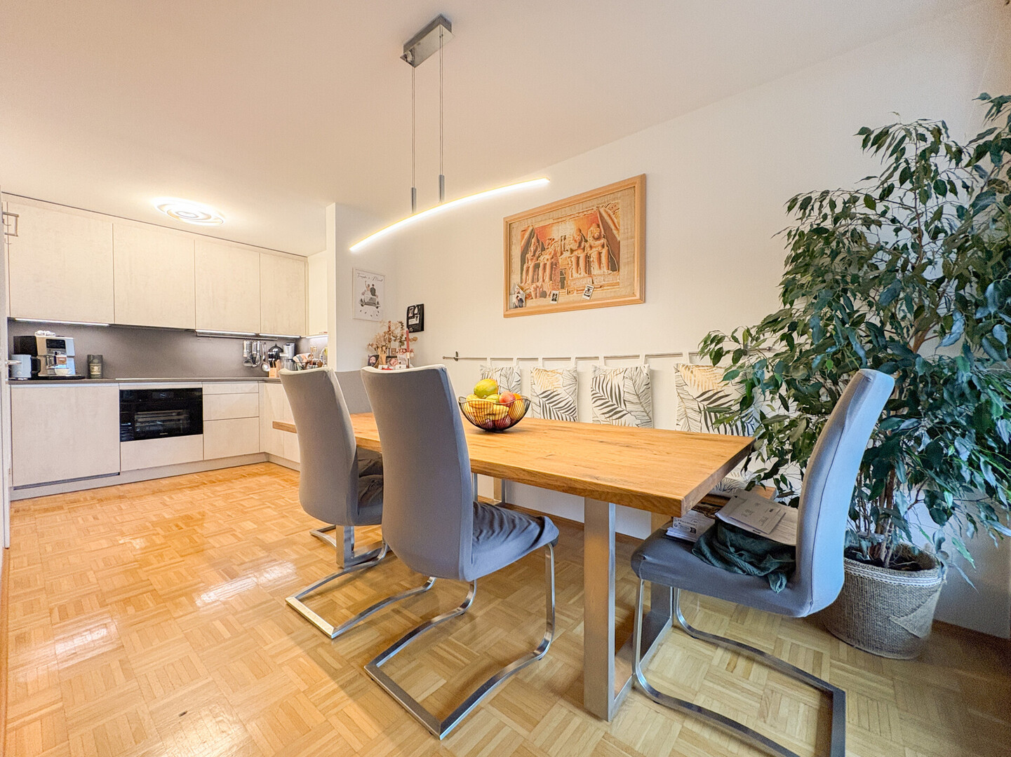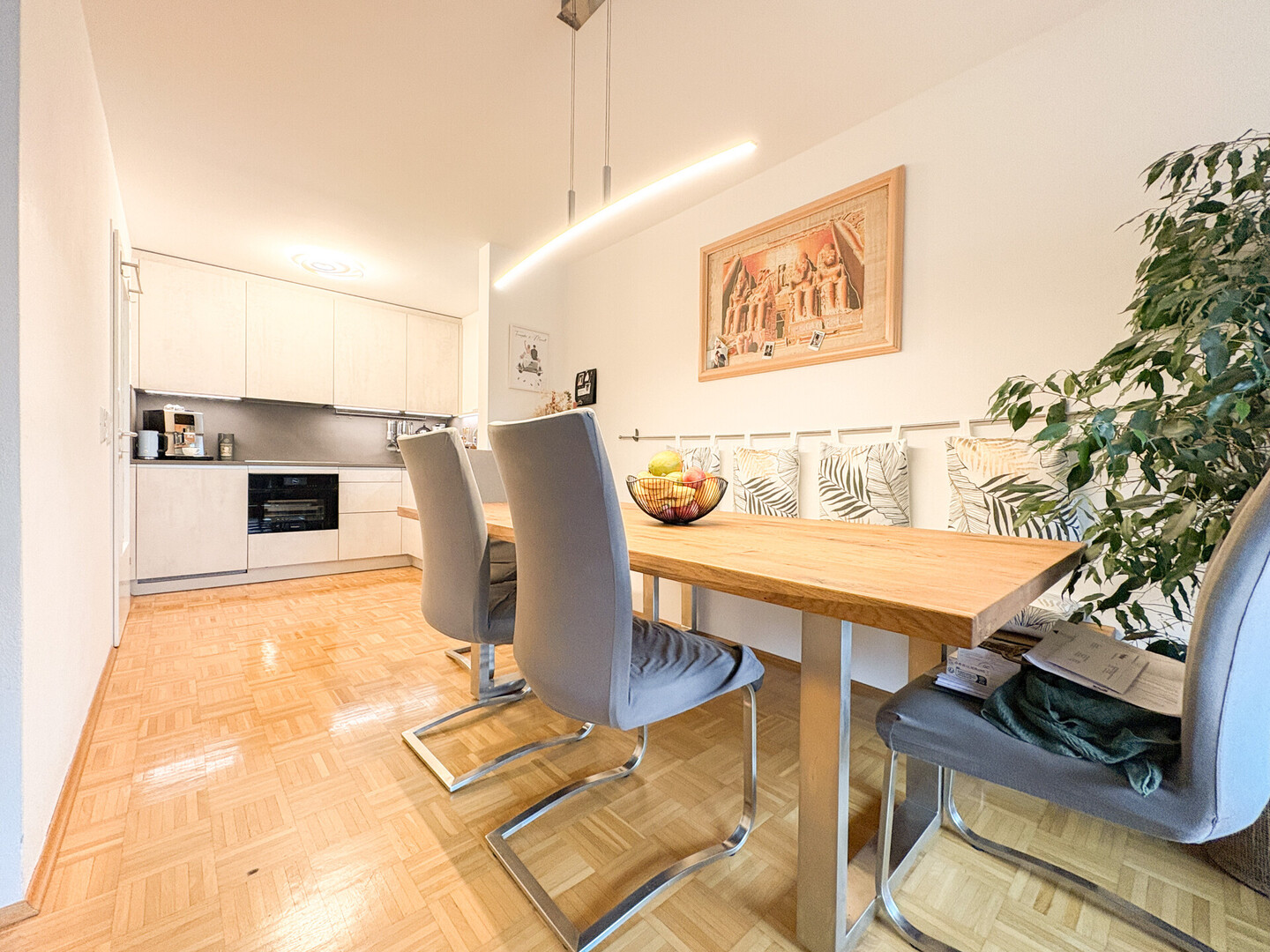 Der großzügige Eingangsbereich/Flur empfängt Sie mit viel Platz und führt weiter in den hellen, offenen Wohnbereich, der viel Platz für individuelle Gestaltung und entspannte Stunden bietet. Die im Jahr 2025 von der renommierten Firma "Küchenwerkstatt" realisierte, hochwertige Einbauküche fügt sich harmonisch in das Gesamtbild ein und erfüllt höchste Ansprüche an Design und Funktionalität.