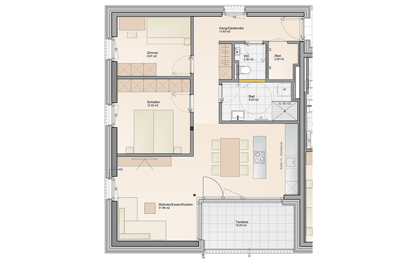 Perfekte Raumteilung & Süd-Terrasse: 3-Zimmer Wohnung (Top B03)