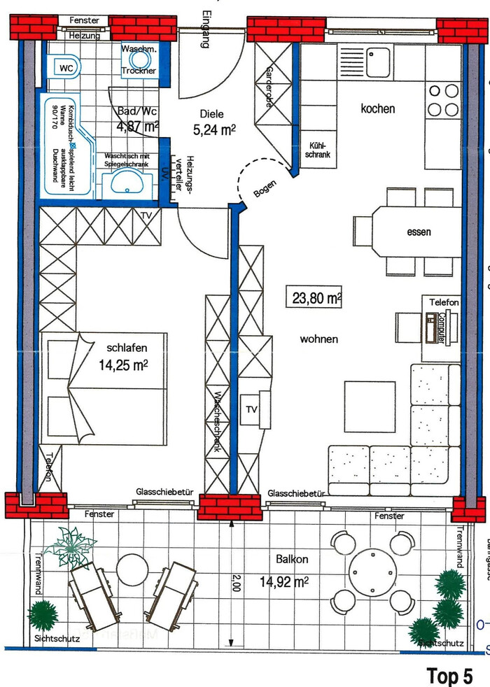 Ausrichtung Balkon: Süden