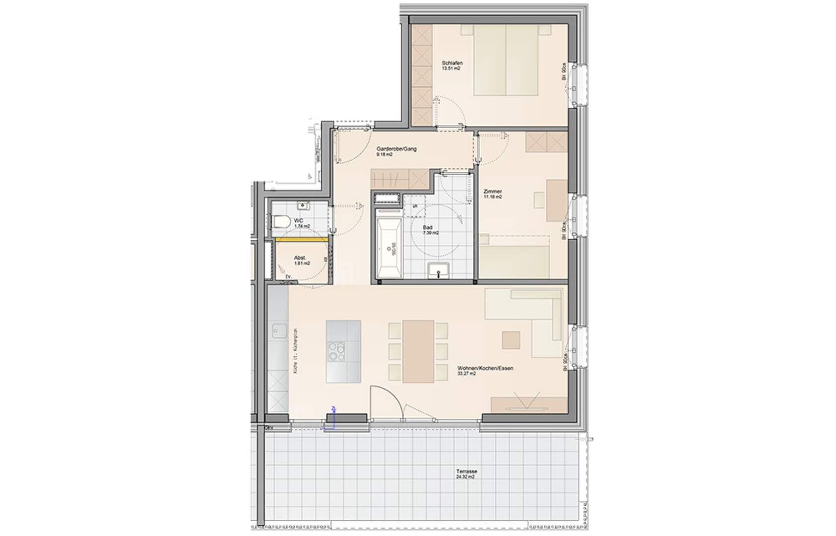 Besonders hervorzuheben sind die teilweise sehr großzügigen, überdachten Terrassen und die gemütlichen Eckbalkone. Die 2- bis 4-Zimmer Wohnungen überzeugen mit klaren Grundrissen und hochwertigen Materialien der ZIMA-Grundausstattung. Alle Einheiten sind zudem barrierefrei gestaltet. Obligatorisch werden ein Lift in jedem Wohnhaus, ein Spielplatz, Fahrradraum, Tiefgarage und zusätzliche PKW-Abstellplätze im Freien realisiert.