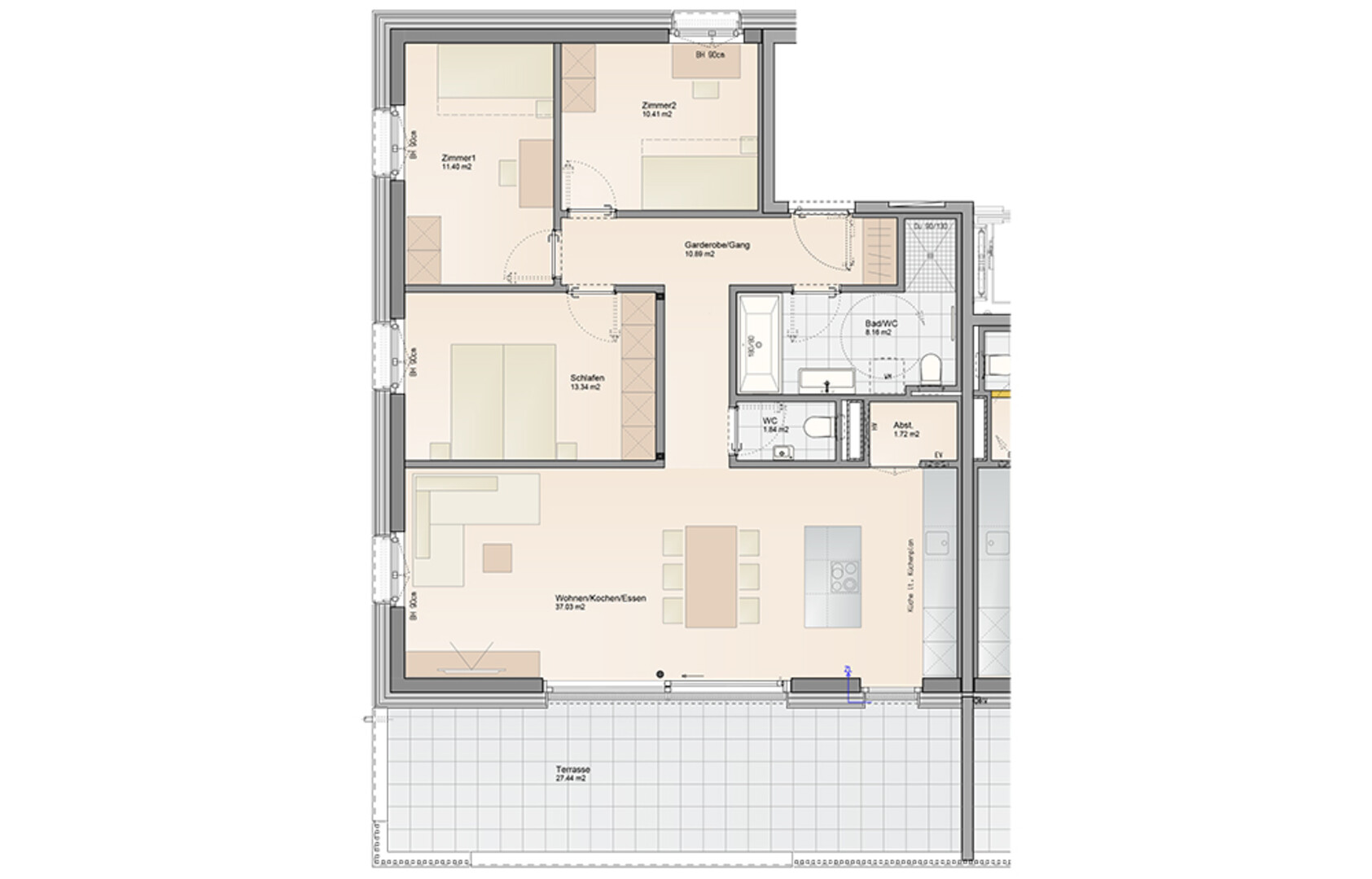 Besonders hervorzuheben sind die teilweise sehr großzügigen, überdachten Terrassen und die gemütlichen Eckbalkone. Die 2- bis 4-Zimmer Wohnungen überzeugen mit klaren Grundrissen und hochwertigen Materialien der ZIMA-Grundausstattung. Alle Einheiten sind zudem barrierefrei gestaltet. Obligatorisch werden ein Lift in jedem Wohnhaus, ein Spielplatz, Fahrradraum, Tiefgarage und zusätzliche PKW-Abstellplätze im Freien realisiert.