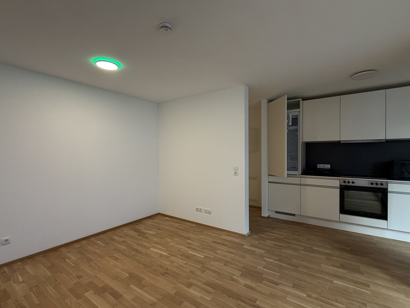 Die Wohnung verfügt über ein geräumiges Wohnzimmer mit Zugang zu einem 7,61 m² großen Balkon. Darüber hinaus gibt es ein Schlafzimmer, ein Badezimmer und eine voll ausgestattete Küche. Alle Räume außer Badezimmer sind mit einem wertigen Parkettboden ausgestattet.