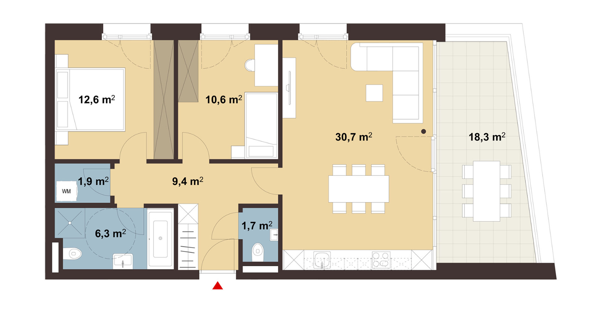 3-Zimmerwohnung mit großer Terrasse | Top 15