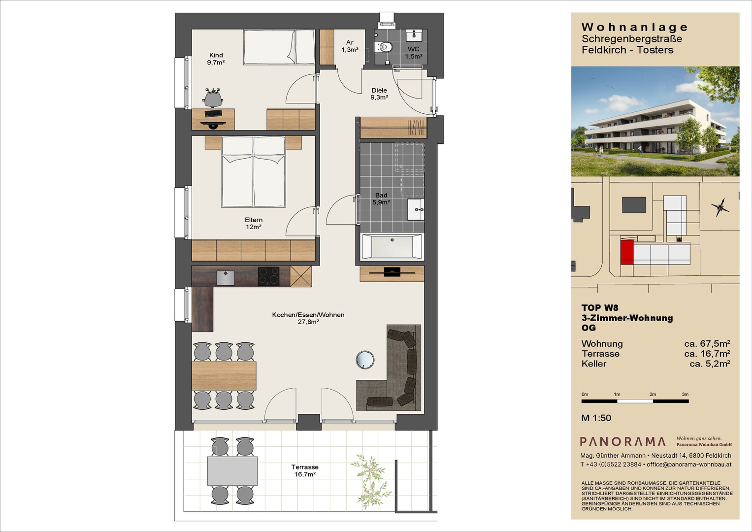 Sonnige, ruhige und stadtnahe 3-Zimmerwohnung (Top W8) in Feldkirch-Tosters