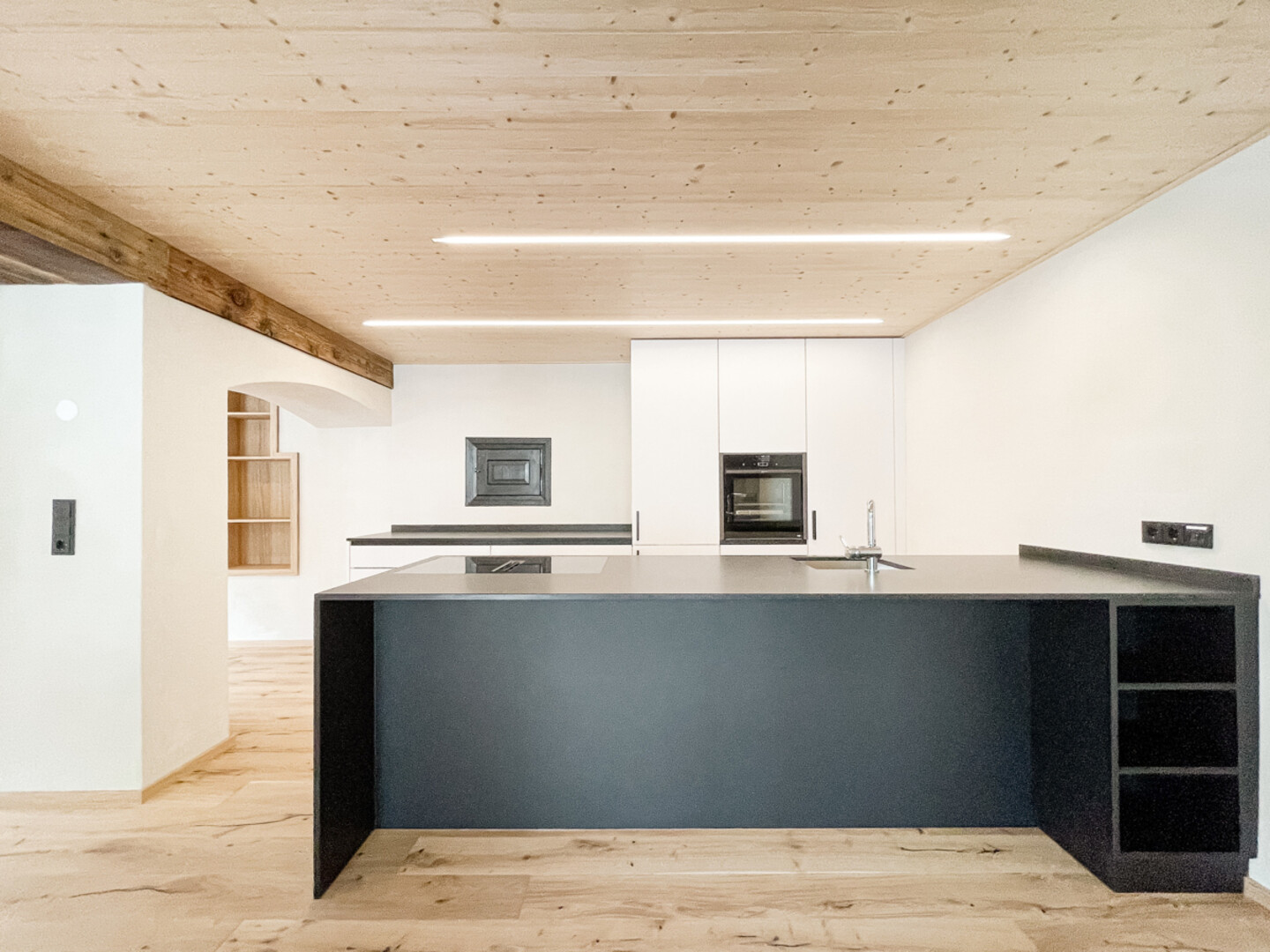 modernes Wohnambiente zu schaffen. Von den Holzfenstern mit 3-fach Verglasung über die ökologischen Materialien bis hin zur Tischlerküche, wurde viel Wert auf Qualität und Nachhaltigkeit gelegt. Die Kalkdecke und die abwaschbare Kalkglätte im Bad, sowie die Kasein Böden unterstreichen den ökologischen Anspruch der Wohnung und sorgen für ein hygienisches, pflegeleichtes und behagliches Wohnen auf höchstem Niveau.