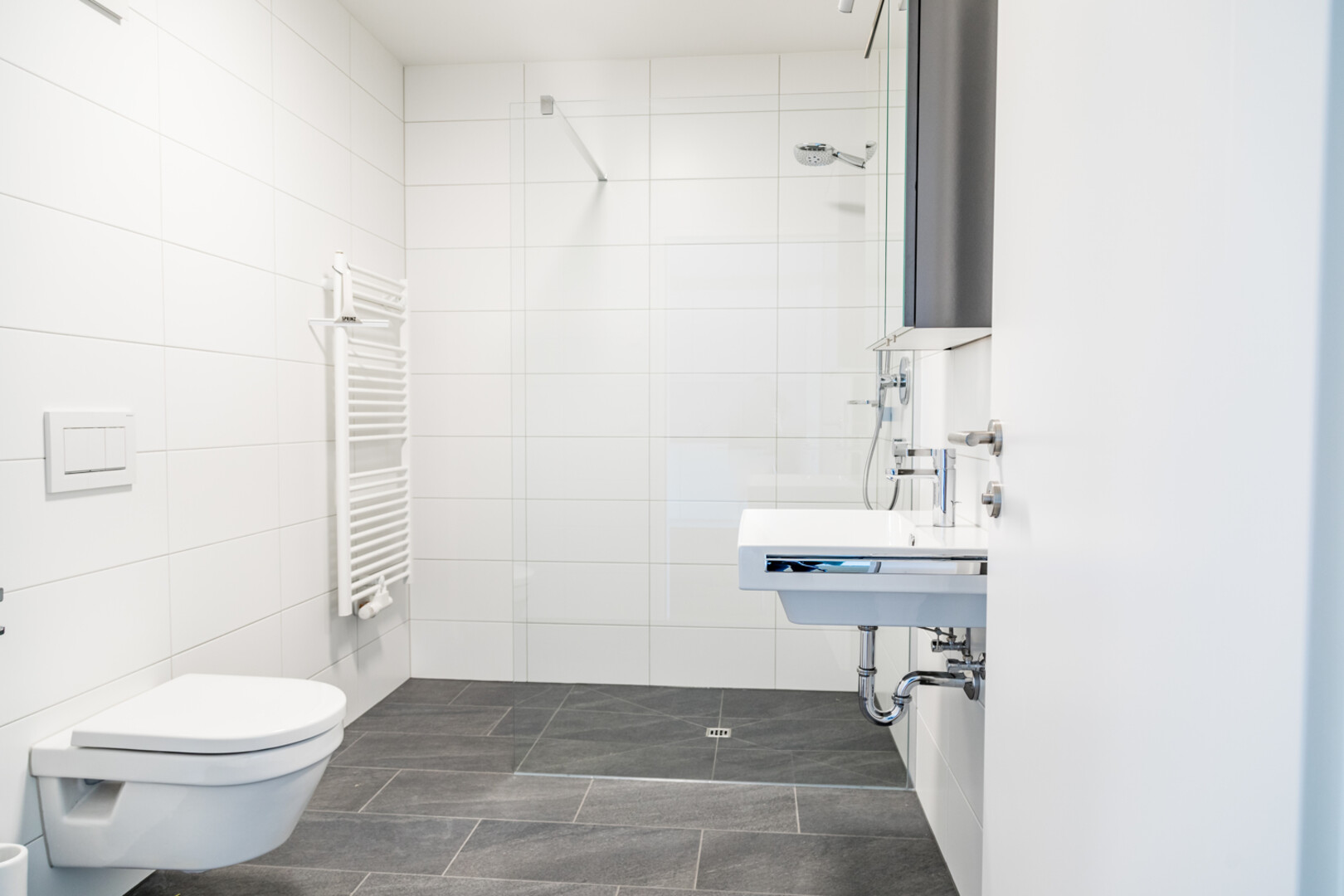 Badezimmer: Modern gefliest mit hochwertigen Sanitäreinrichtungen
