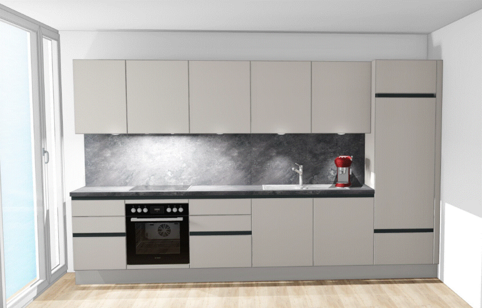 Die hochwertige Einbauküche (wird in KW 13 eingebaut) fügt sich nahtlos in das offene Wohnkonzept ein und überzeugt durch ihr zeitloses, minimalistisches Design sowie durchdachte Funktionalität – ein Ort, an dem Kochen und Genießen zum Erlebnis werden.