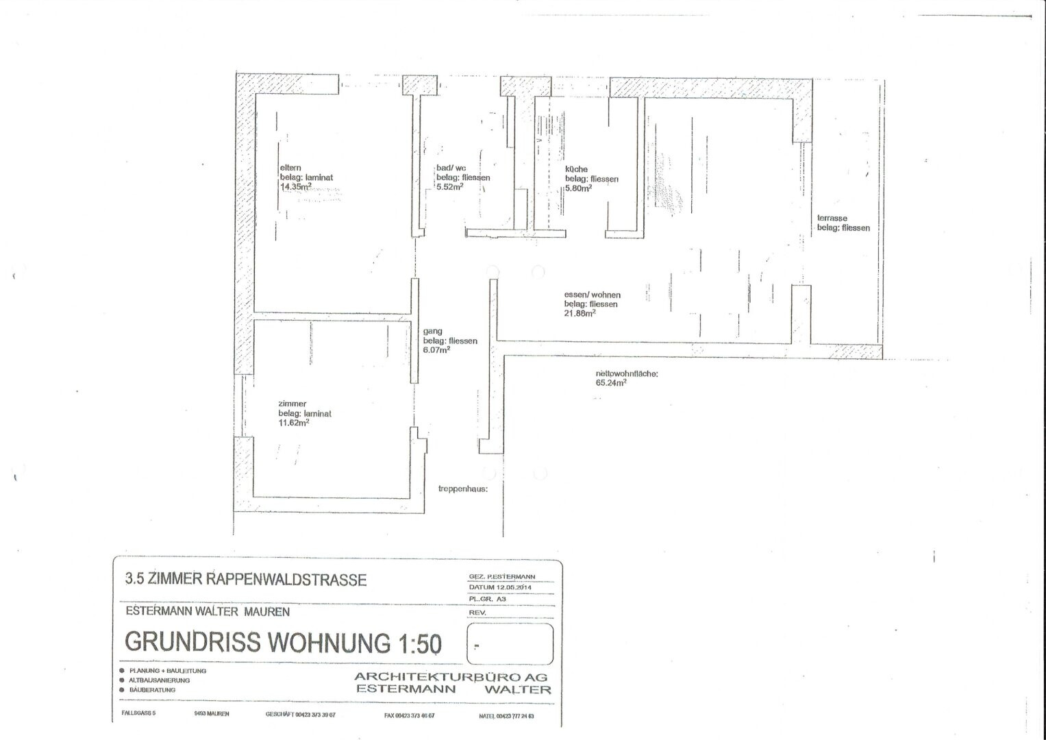 Die Wohnung liegt im 3 Stock (o. Lift) und steht per 1. Mai zur Verfügung