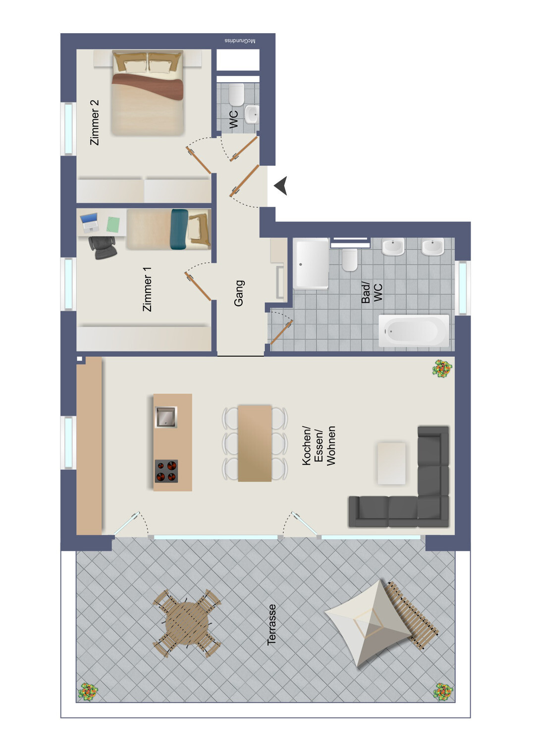 - ca. 83 m² Wohnfläche, hervorragend eingeteilt mit sehr viel Tageslicht
