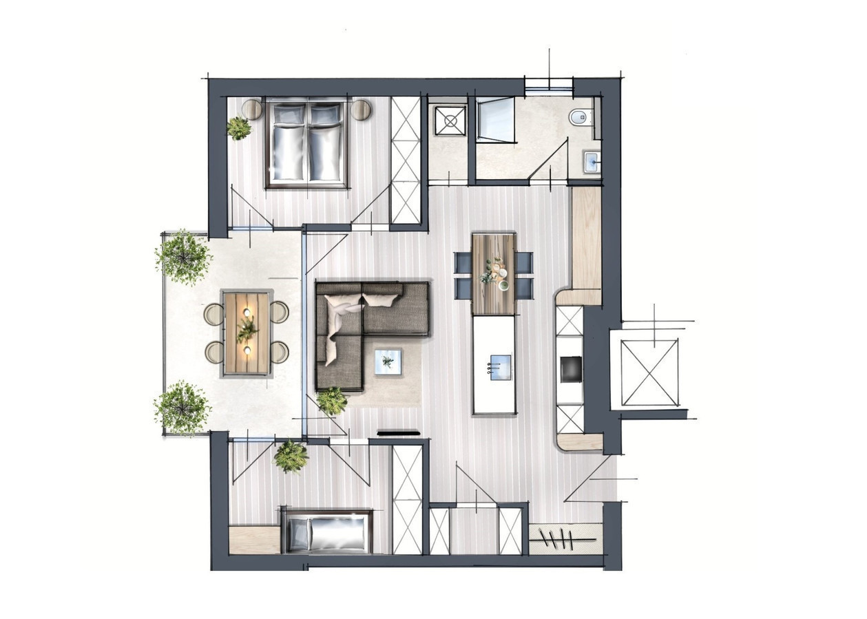 Alle Wohnungen verfügen über großzügige Sonnenterrassen mit ca. 13 m².