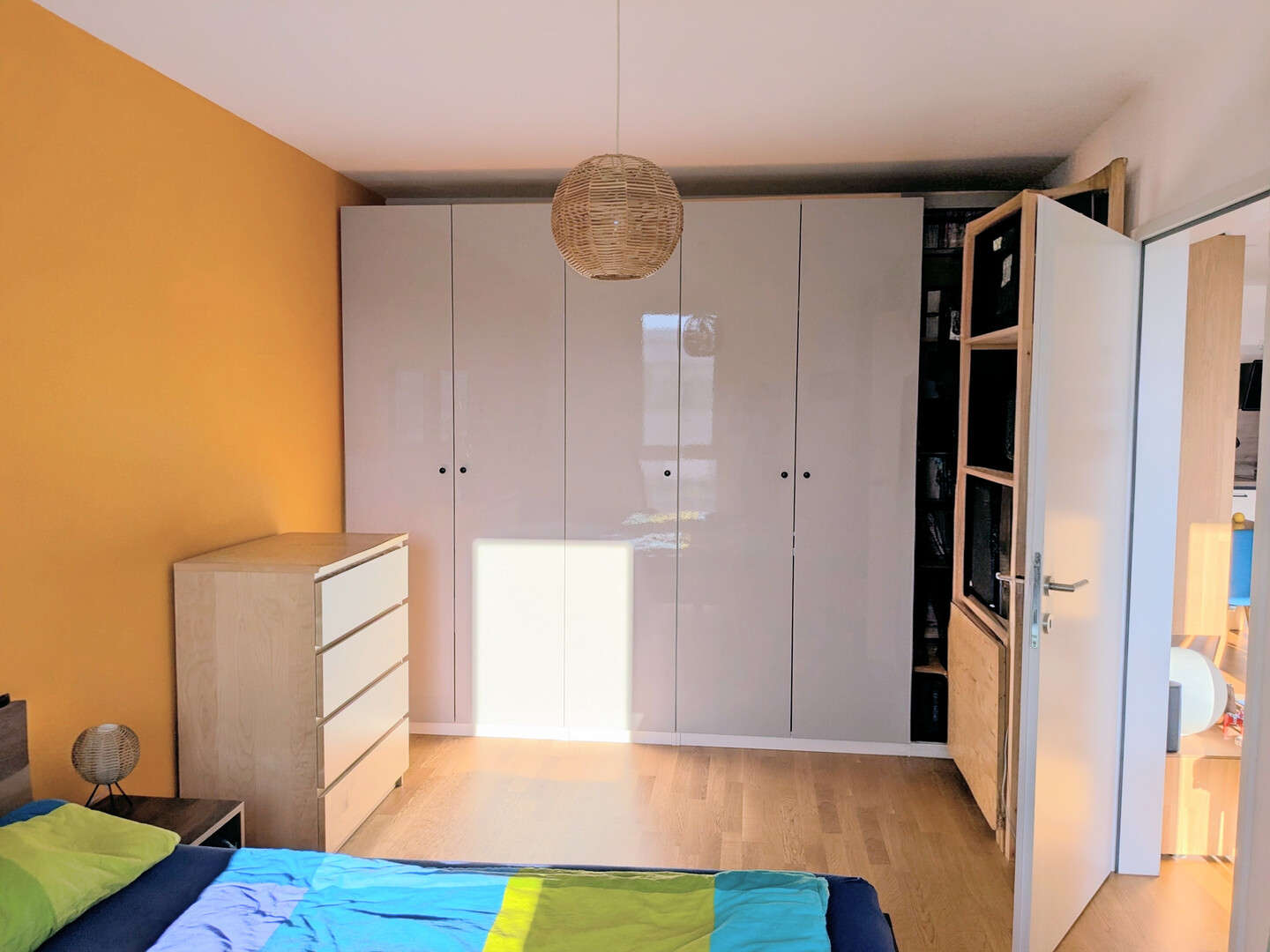 Ein echtes Highlight ist die große Schiebetüre zum 13 m² großen Balkon, der zum Entspannen, Frühstücken oder gemütlichen Abenden im Freien einlädt.