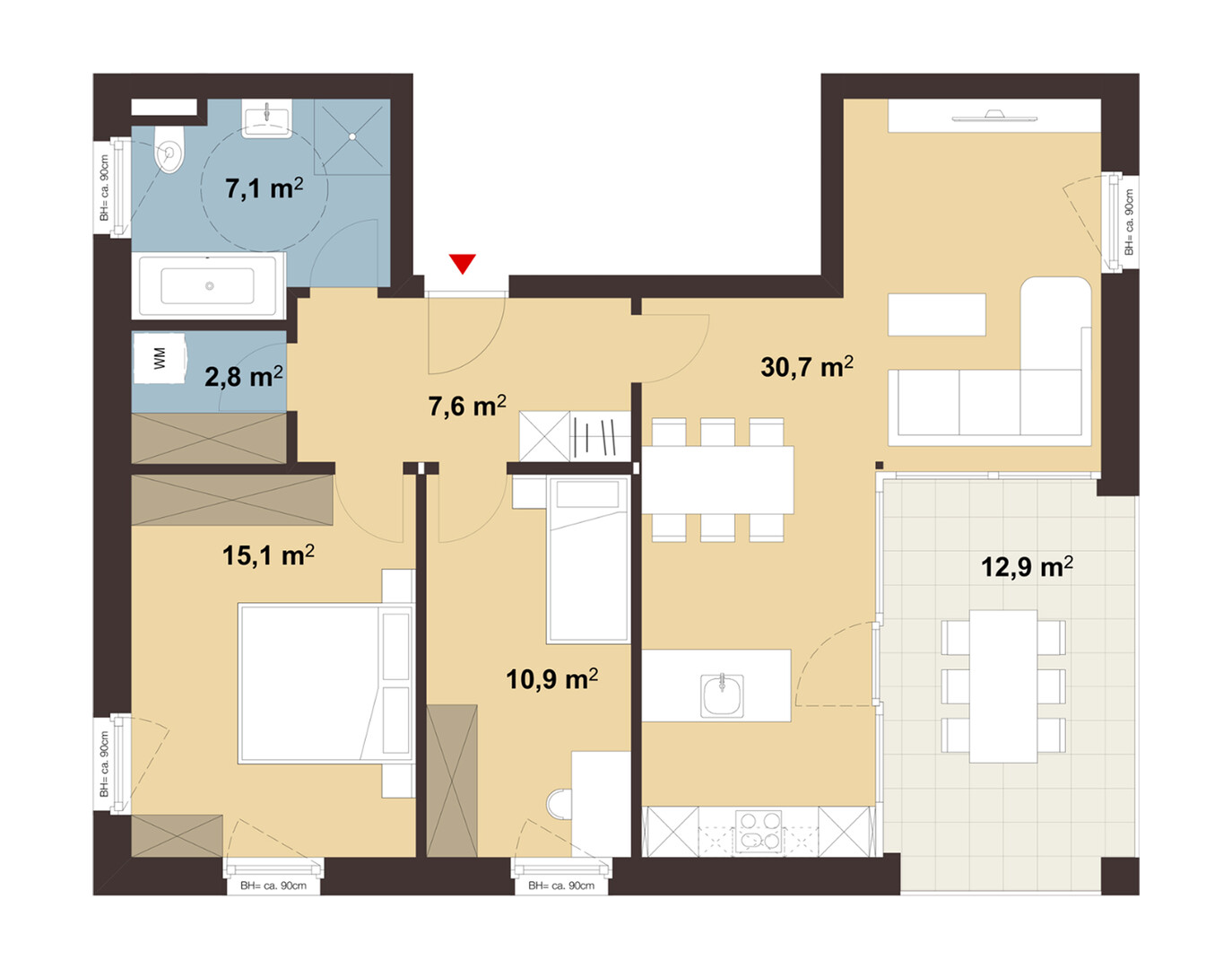 Sonnige 3-Zimmer-Terrassenwohnung | A02