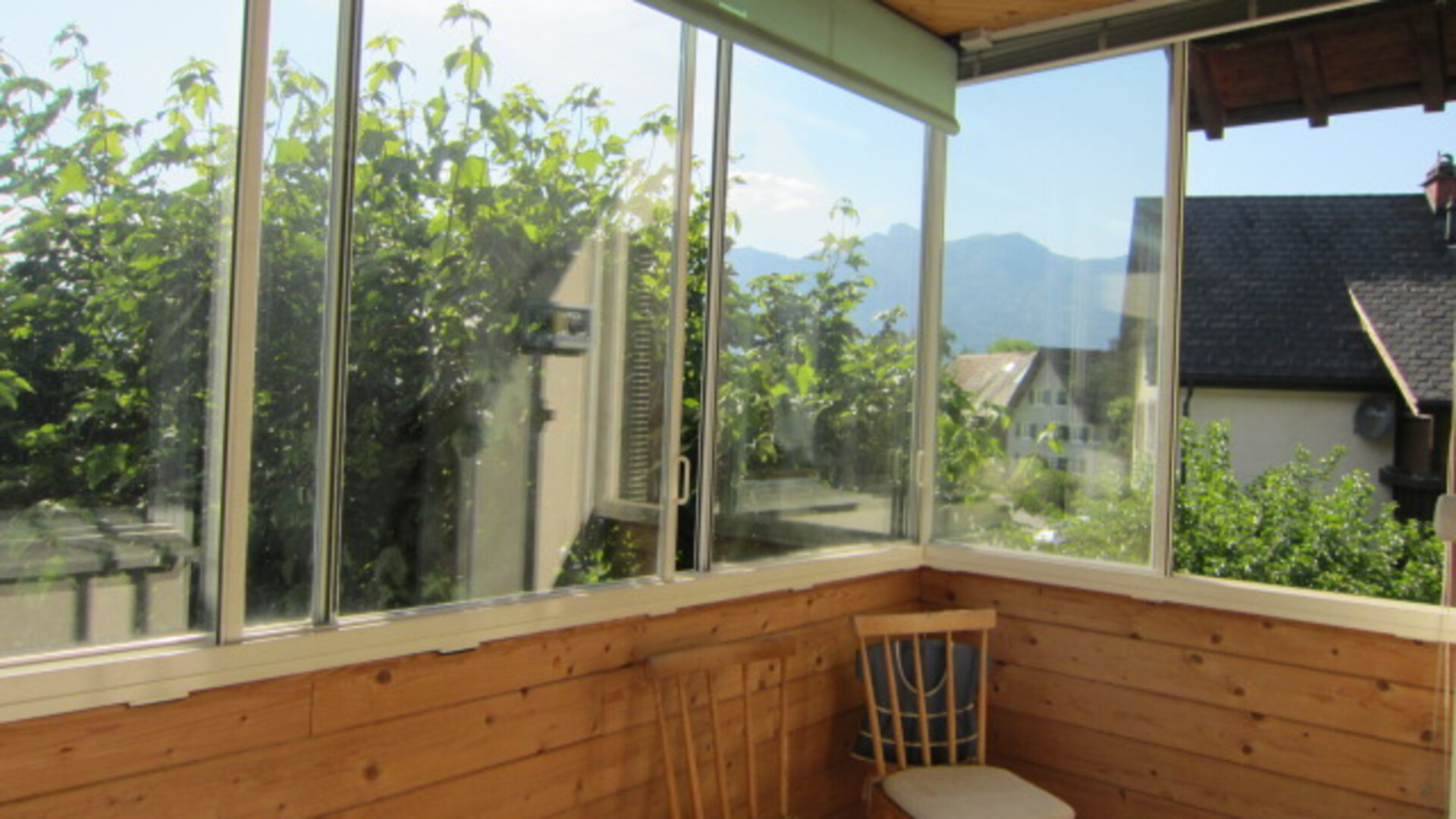 Die Wohnung befindet sich im Zentrum von Nofels im ehemaligen Raiffeisengebäude.