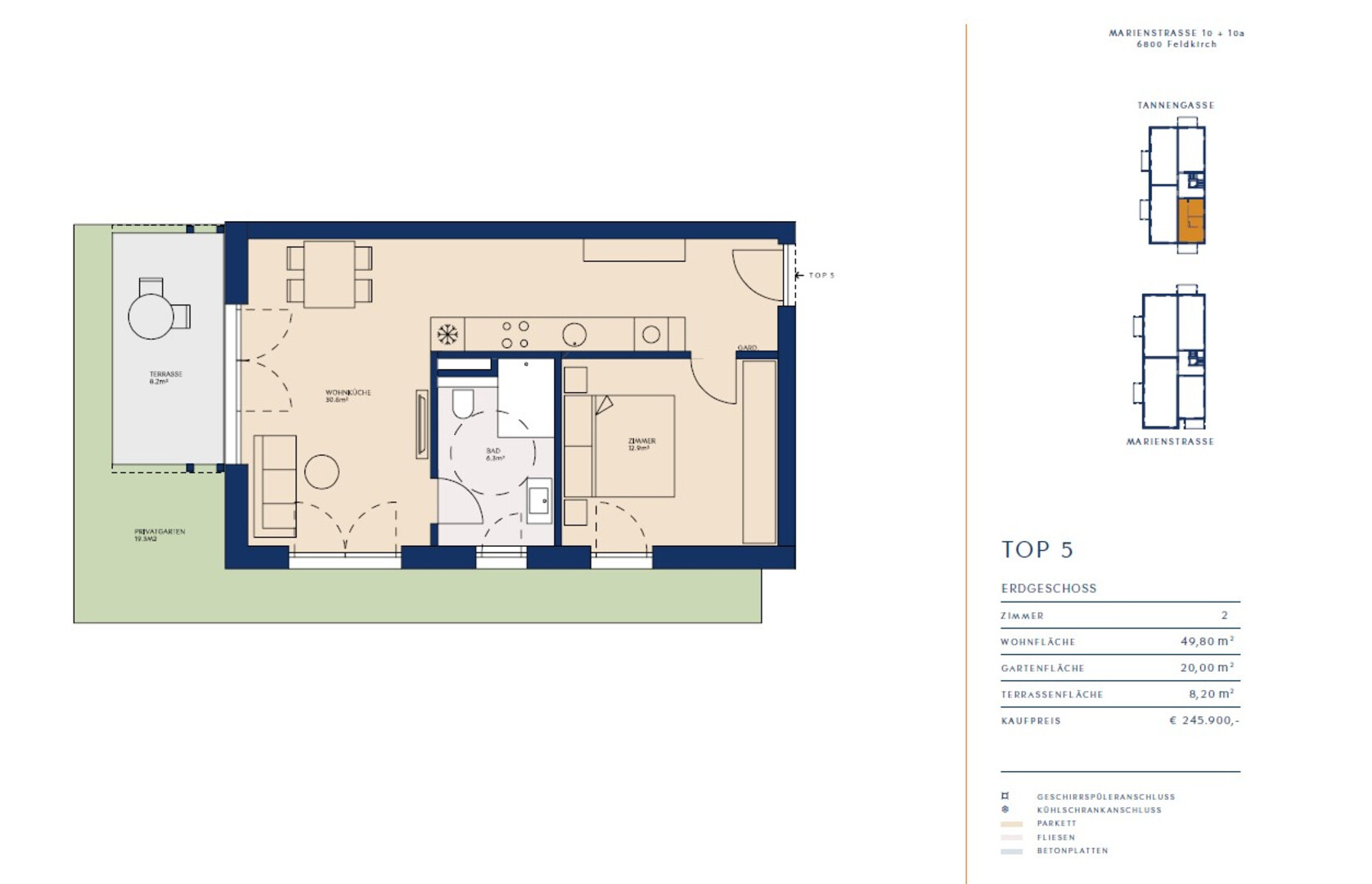 Top 05 Haus 2 | IHRE wunderschöne 2-Zimmer-Terrassen-Wohnung mit Privatgarten in der Marienstraße 10 in Feldkirch-Gisingen - jetzt bezugsfertig - zu verkaufen