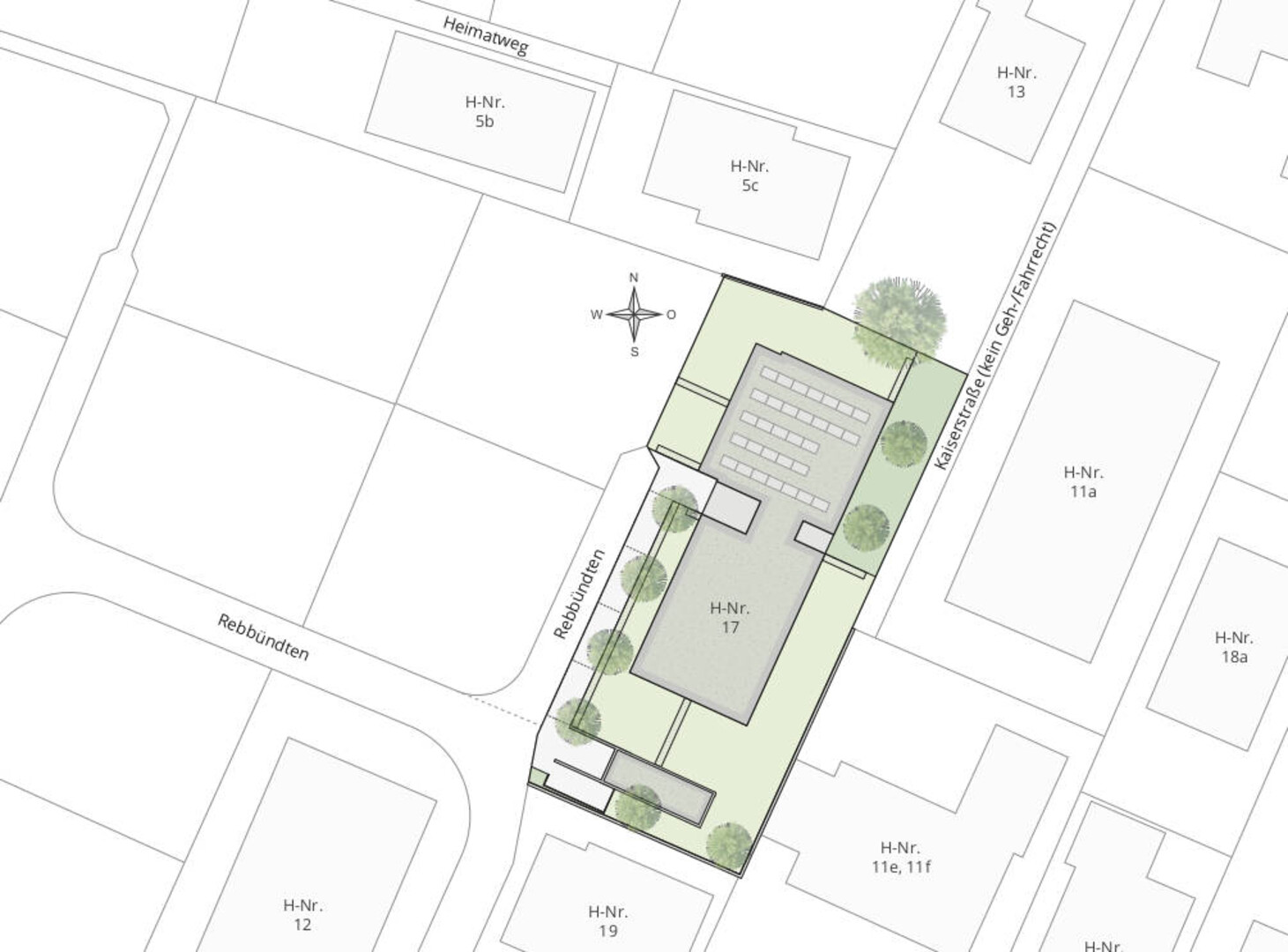 - extensive Begrünung auf Hauptdach und Tiefgaragenabfahrt