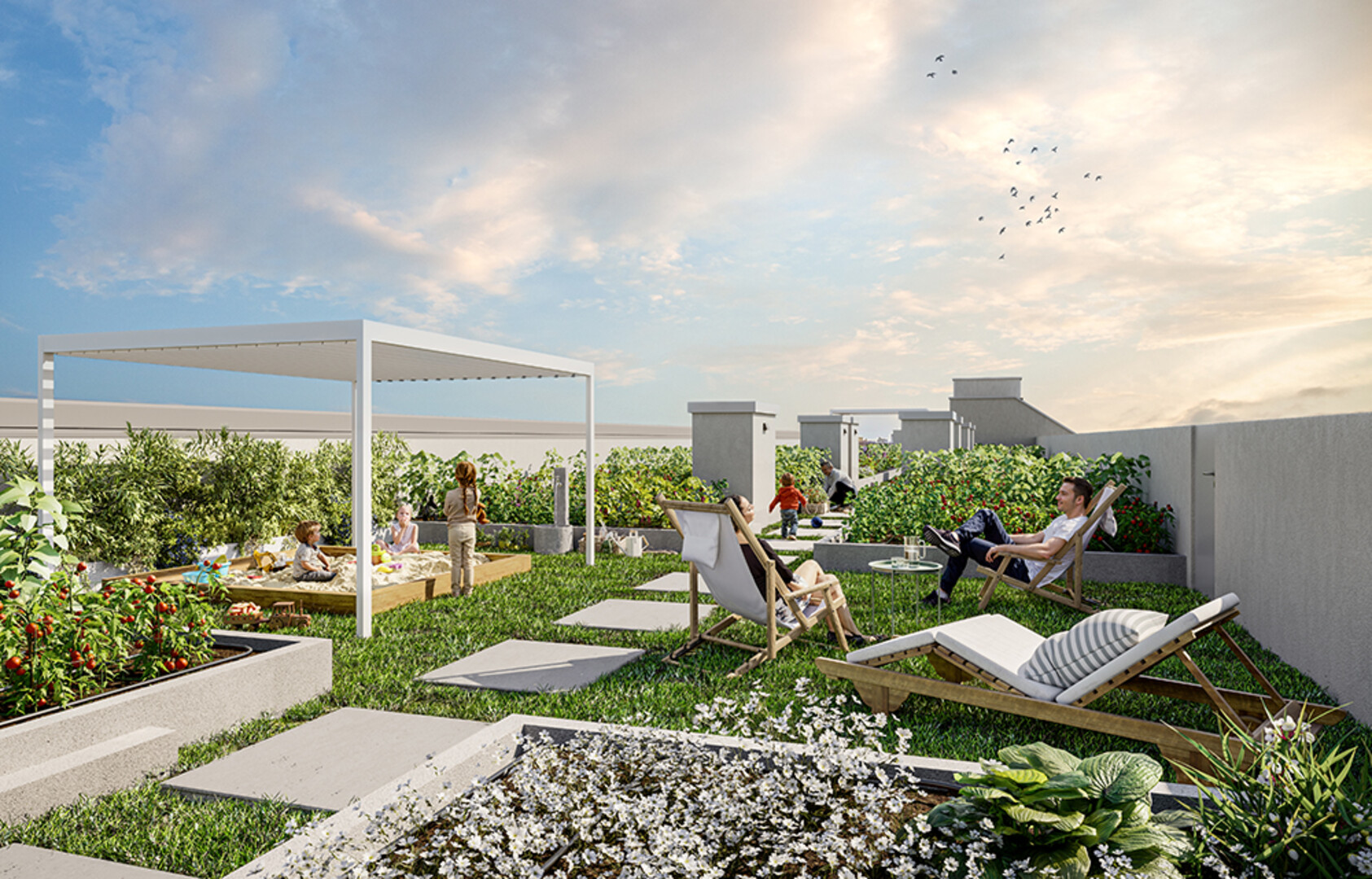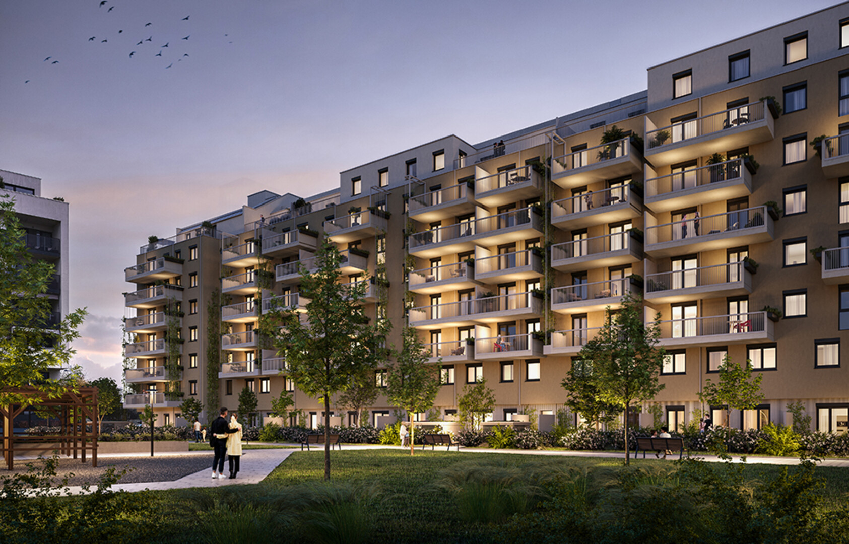 Zusätzliche Mehrwerte wie ein Fitnessraum, Photovoltaiklösungen, großzügige Freiflächen sowie private Gartenbeete am Dach steigern die Vermietbarkeit langfristig.