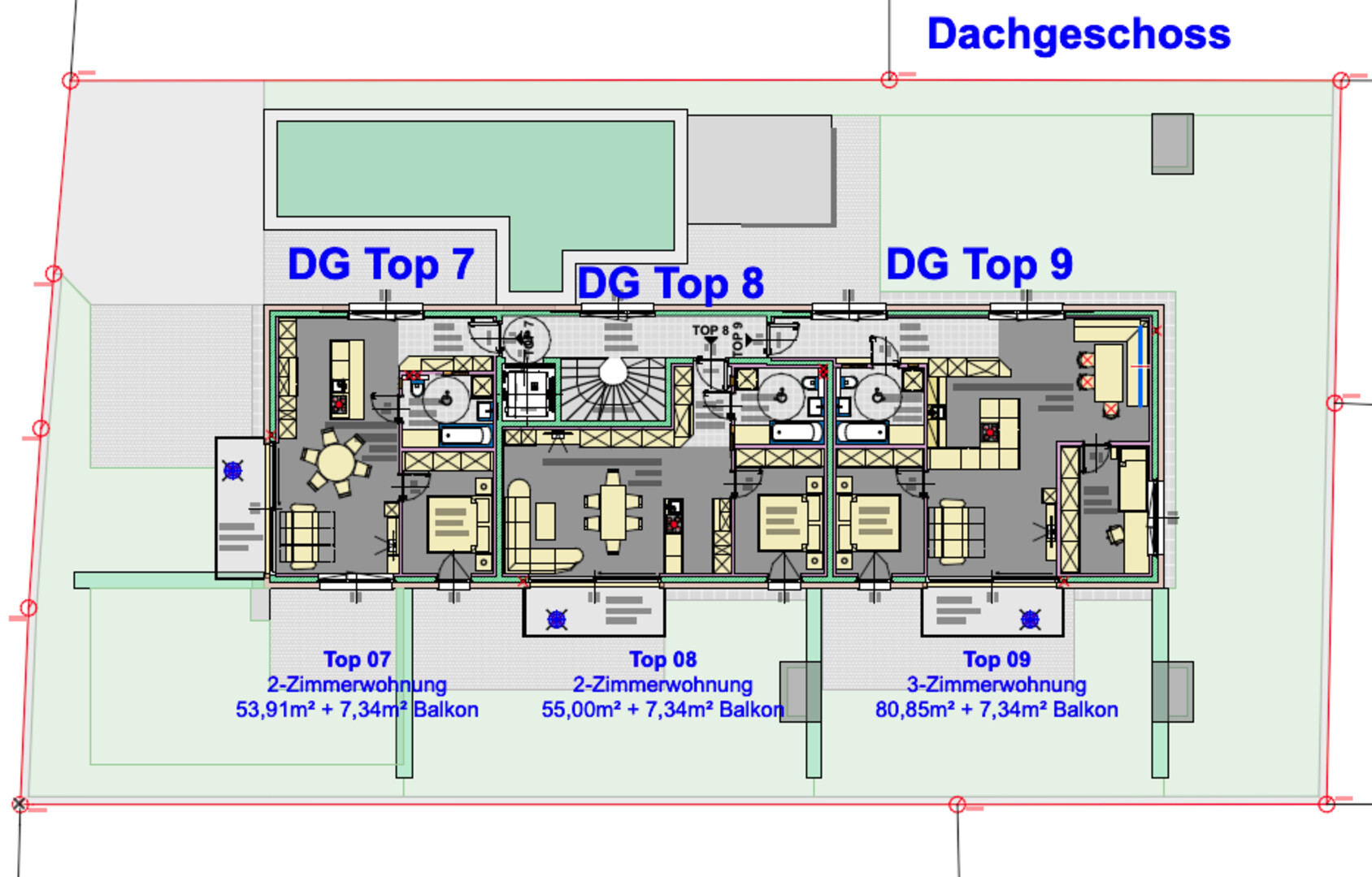 Die Wohnung verfügt über eine Wohnfläche von 53,91 m² welche durch ihre durchdachte Raumaufteilung besticht und im Jahr 2025/26 erbaut werden wird. Zu den besonderen Merkmalen gehören ein Balkon mit 7,34 m² sowie ein geräumiger Keller mit 7,24 m². Gemeinschaftlich können auch Fahrradabstellraum mit 29,75 m², sowie eine großzügige Dachterrasse mit ca. 45m² genutzt und die traumhafte Aussicht über Bregenz genossen werden.